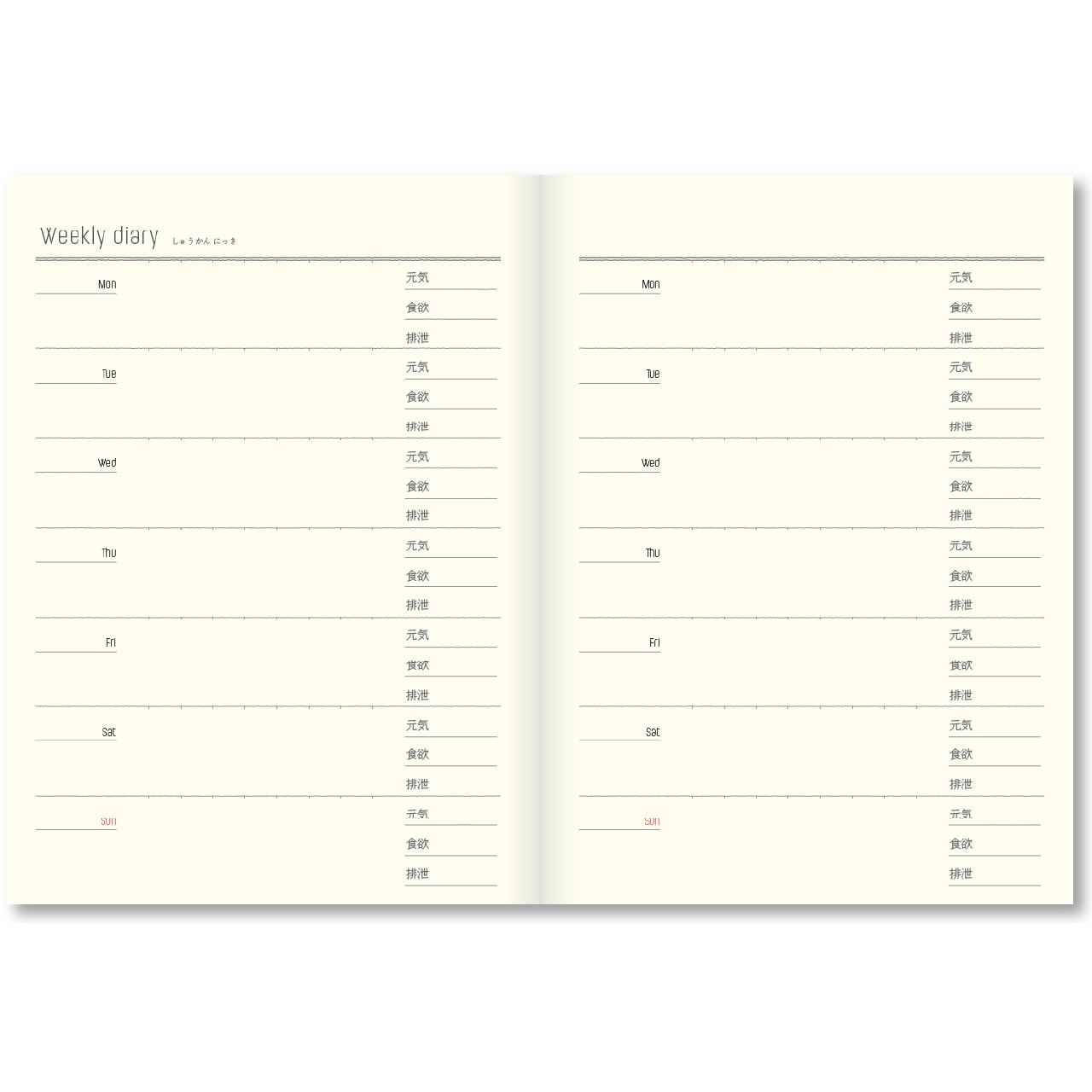・ウィークリー手帳(日付フリー)
